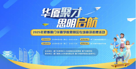 9 月 24 日下午,由厦门市思明区人力资源和社会保障局、厦门华厦学院联合主办,厦门高新人才开发有限公司与厦门华厦学院就业指导中心共同承办的 “华厦聚才・思明启航”2025 年秋季厦门华厦学院思明区专场宣讲招聘活动,在厦门华厦学院顺利举办。